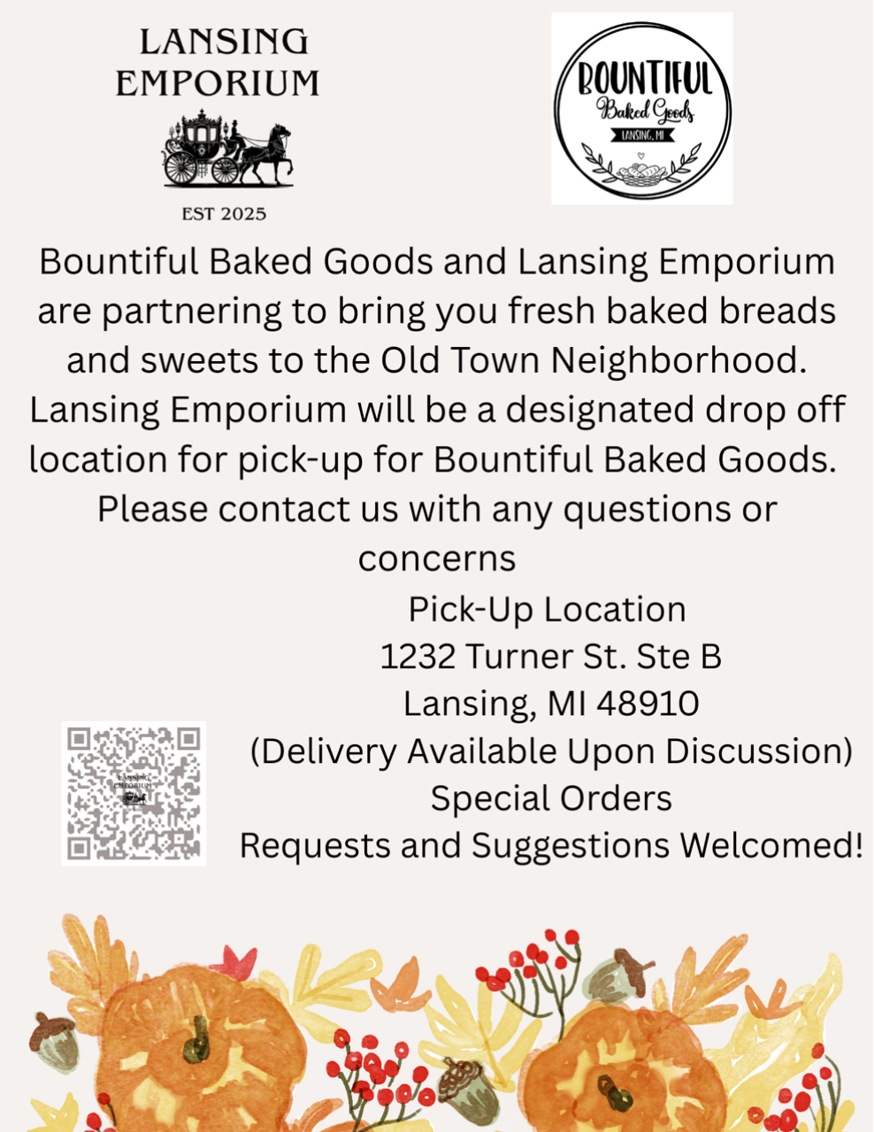 Get your baked goods here in Old Town Lansing, featuring: Bountiful Baked Goods.